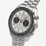 Acesta dispune de o carcasă din oțel inoxidabil de 43 mm și un cadran distinctiv cu design melc, ce include scale pentru tahimetru, pulsometru și telemetru, oferind un aer vintage unic în seria Speedmaster. Alimentat de calibrul manual 9908, ceasul asigură o precizie remarcabilă, rezistență la câmpuri magnetice și o rezervă de putere de 60 de ore. Este primul cronograf Speedmaster echipat cu acest mecanism. Prin estetica sa elegantă și legătura cu Jocurile Olimpice de la Paris 2024, acest model reunește atât o semnificație istorică deosebită, cât și inovația tehnologică de vârf.