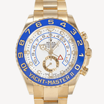 Brățara din aur galben de 18 carate este cunoscută pentru confortul său, siguranța pe încheietură și sistemul de închidere Oysterlock care previne deschiderea accidentală. Yacht-Master II îmbină în mod rafinat performanța și eleganța, devenind astfel un simbol al excelenței în orologerie dedicat pasionaților de sporturi nautice.