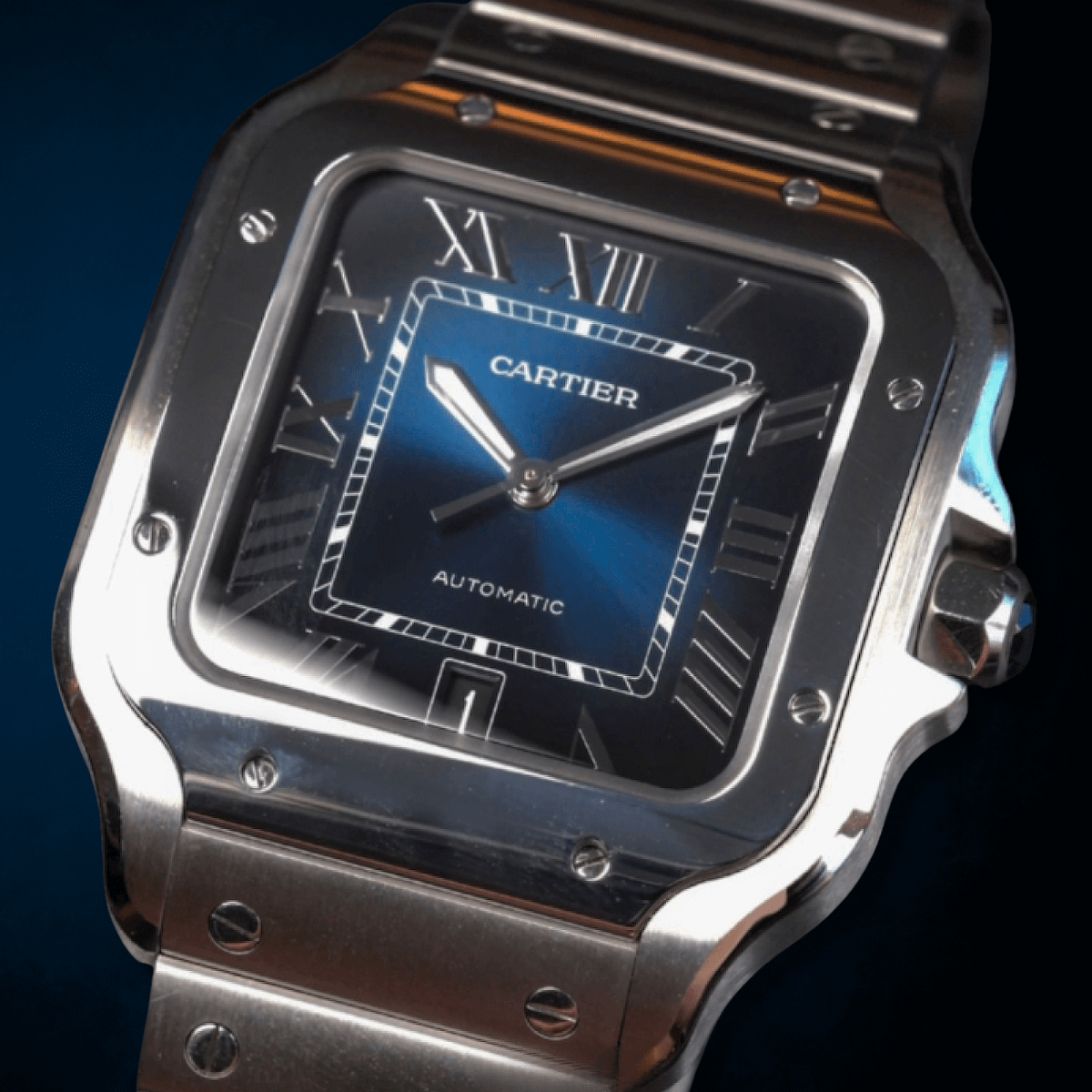 Descoperă colecția Cartier Santos de la EraVault. Lansat în 1904 pentru aviatorul Alberto Santos-Dumont, acest model de ceas de lux se distinge prin designul pătrat și mecanismele elvețiene de precizie.