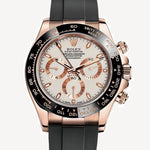 Atingând un nivel excepțional de strălucire estetică într-un design care emană fiabilitate robustă și excelență tehnică, Rolex a creat un alt ceas cu un design rafinat și o execuție deosebită din prețuita colecție Cosmograph Daytona. Echipat cu mișcarea mecanică 4130, certificată de COSC, ce oferă o autonomie de 72 de ore, acest ceas reprezintă o expresie a preciziei.