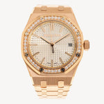 O bijuterie a meșteșugului orologic, acest ceas Royal Oak de la Audemars Piguet, cu carcasa sa din aur roz 18k și diamantele prețioase pe cadran și brățară, emană eleganță și rafinament în fiecare detaliu. Un simbol al luxului atemporal într-un design compact de 37 mm.