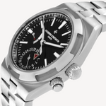 Cadranul negru oferă un contrast puternic cu indici și indicatori orari tratați cu material luminiscent, asigurând lizibilitate bună în condiții variate de lumină. Funcția Dual Time permite afișarea simultană a două fusuri orare, completată de un indicator zi/noapte și o afișare a datei, integrate într-un layout echilibrat.
