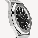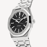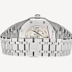 Carcasa și brățara din oțel inoxidabil oferă durabilitate și stil atemporal. Cadranul argintiu, cu motif „Grand Tapisserie”, completează designul clasic. Mâinile și indicii luminoși permit citirea ușoară a timpului, în timp ce fereastra de dată adaugă funcționalitate. Cu mecanismul său automatic de înaltă calitate, acest Royal Oak îmbină perfect forma și funcția, reprezentând o alegere distinsă pentru cei care apreciază rafinamentul în detaliu.