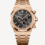 Modelul Royal Oak 26240OR.OO.1320OR.06 îmbină cu măiestrie luxul atemporal cu performanța de excepție. Carcasa și brățara sunt realizate integral din aur roz de 18K, oferind un contrast elegant cu cadranul negru cu model emblematic „Grande Tapisserie”. Ceasul este echipat cu mecanismul automat calibre 4401, care oferă funcții cronograf și o autonomie de 70 de ore.