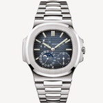 Carcasa de 40 mm, realizată din oțel inoxidabil și cu o grosime de doar 8,52 mm, păstrează forma inconfundabilă a colecției Nautilus – cu lunetă octogonală rotunjită și finisaje satinate și lustruite manual. Cadranul este albastru antracit, cu textură „horizontală în relief”.