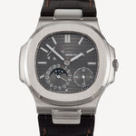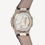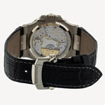 Un model extrem de apreciat de colecționari, Patek Philippe Nautilus 5712G-001 reprezintă o reinterpretare elegantă a iconicului Nautilus din anii '70. Ceasul impresionează prin carcasa sa din aur alb masiv de 18K, cu un diametru de 40 mm, realizată din trei piese, alături de o coroană înșurubabilă și un capac transparent din cristal safir.