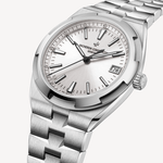 Cadranul său gri metalizat, decorat cu un finisaj fin soleil, evidențiază eleganța subtilă și robustețea designului Overseas.