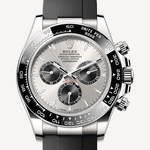 This Oyster Perpetual Cosmograph Daytona in 18 ct white gold, with a steel dial and an Oysterflex bracelet, features a black Cerachrom bezel with tachymetric scale.