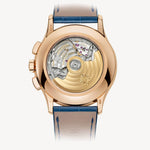 Representing a combination of two popular Patek Philippe complications, the self-winding flyback chronograph with Annual Calendar, Reference 5905, comes in a new rose gold version with a sunburst blue dial – a modern and elegant color accentuating the timeless style of this flagship model.