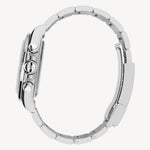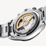 This model features an ice-blue dial with snailed counters, diamonds applique hour markers and hands with a Chromalight display, a highly-legible luminescent material. The central sweep seconds hand allows an accurate reading of 1/8 second, while the two counters on the dial display the lapsed time in hours and minutes. Drivers can accurately map out their track times and tactics without fail.