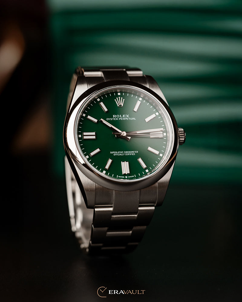 Discover the Rolex Oyster Perpetual collection at EraVault. This Swiss model stands out for its classic design, automatic movement, water resistance, and reliability.