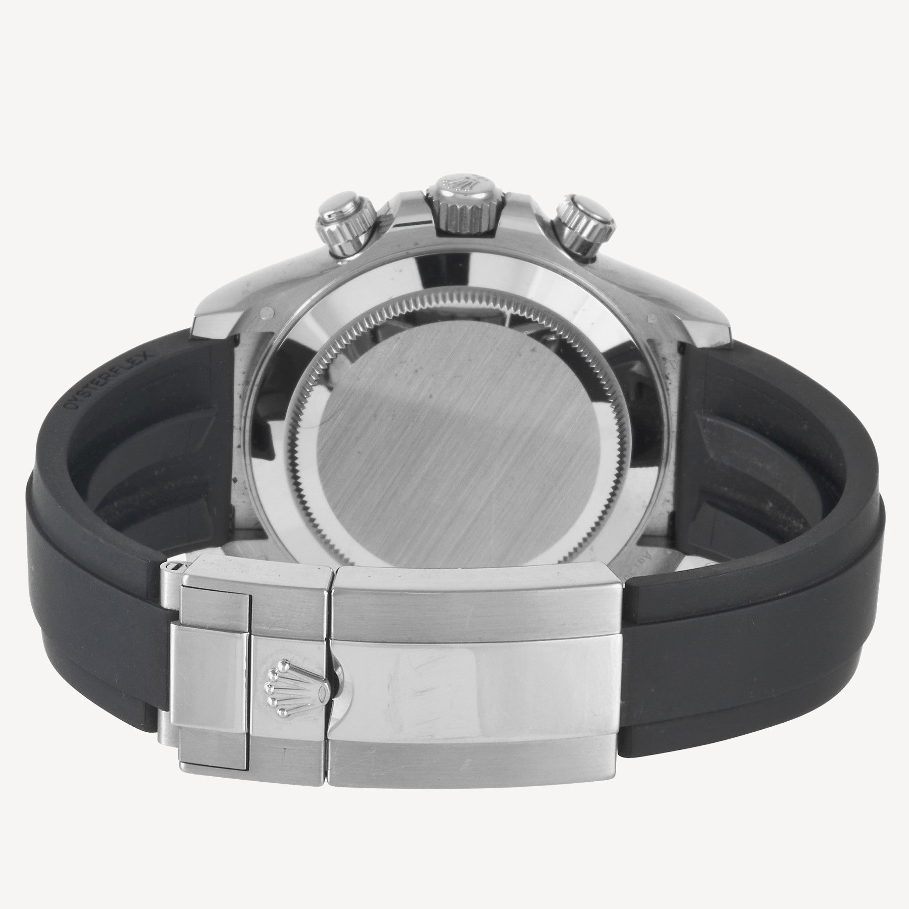 The watch is dressed with a black Oysterflex bracelet, a strap fashioned from a high-performance elastomer with flexible metal blades inside and cushion-system outside for a smooth surface and comfortable wear. Powering this Rolex Oyster Perpetual Cosmograph Daytona Steel/Black Ghost Men's Watch 116519LN is the in-house caliber 4130 automatic chronograph movement offering approximately 72 hours of power reserve.