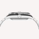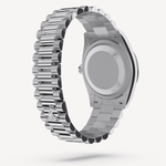 It was therefore identical to the fluting on the case back, which was also screwed onto the case for waterproofness, using specific Rolex tools. Over time, the fluting became an aesthetic element, a genuine Rolex signature feature. Today the fluted bezel is a mark of distinction, in platinum on this Day-Date 36.
