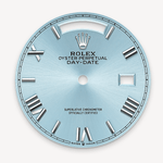 The ice-blue dial is the discreet and exclusive signature of a Rolex platinum watch. Rolex uses platinum, the noblest of metals, for the finest of watches.