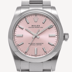 The Oyster Perpetual 34 with a pink dial and an Oyster bracelet.