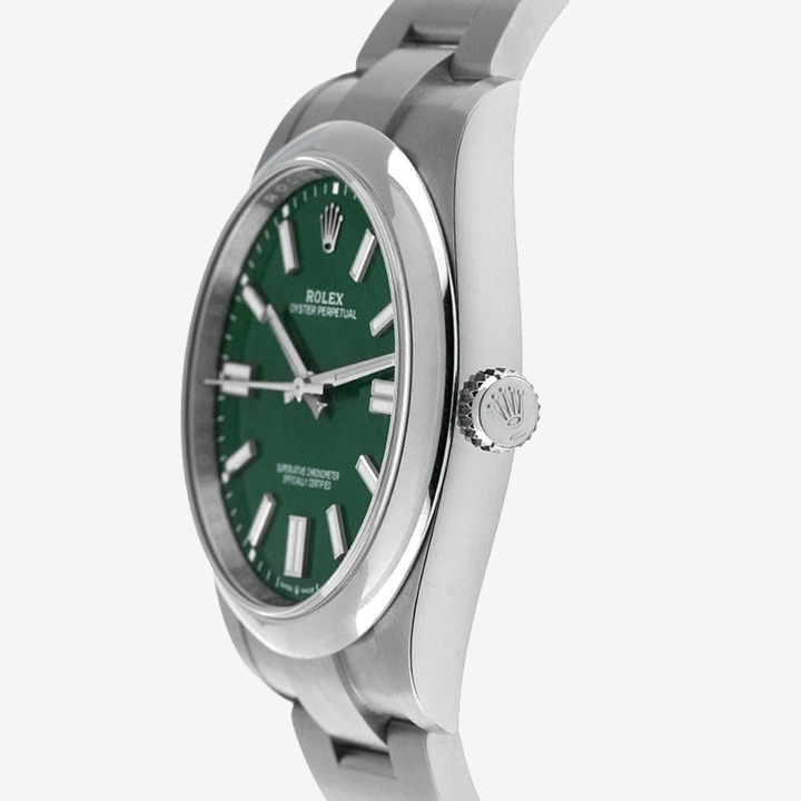 The Oyster Perpetual 41 with a green dial and an Oyster bracelet.