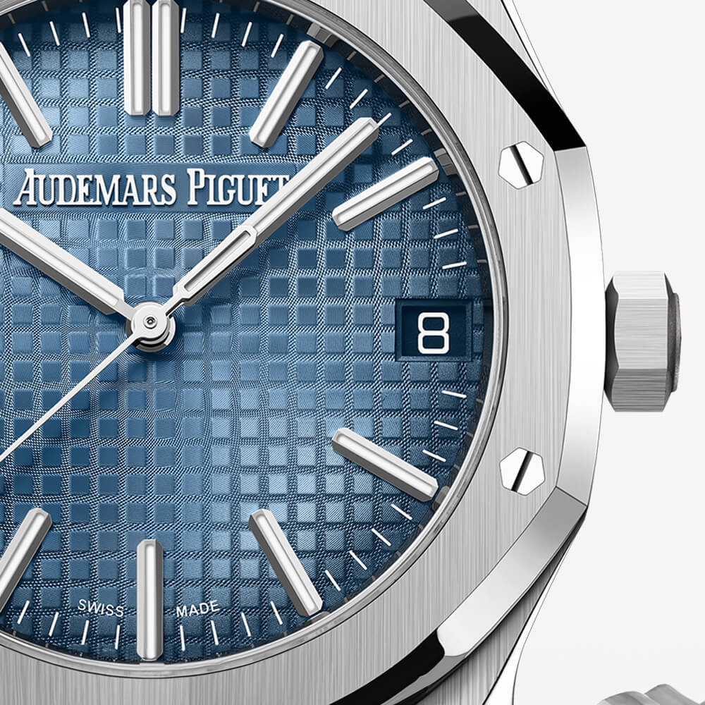 Audemars Piguet’s Date Function adds a modern twist to the classic Royal Oak. The 18k white gold 41 mm case is assembled with a smoked blue Grande Tapisserie dial, a glareproofed sapphire crystal, and a screw-locked crown. Powered by a self-winding 4302 calibre, this timepiece has a 70-hour power reserve.