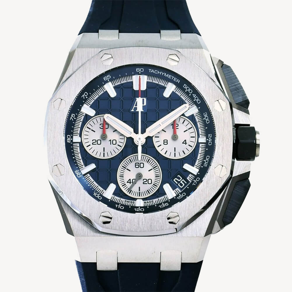 The Audemars Piguet Royal Oak Offshore Chronograph with a brown dial is a must have for any fan of the brand. The stainless steel 43 mm case is assembled with a fixed, ceramic bezel and 40 jewels. This timepiece is powered by the 4401 calibre with a 70-hour power reserve.