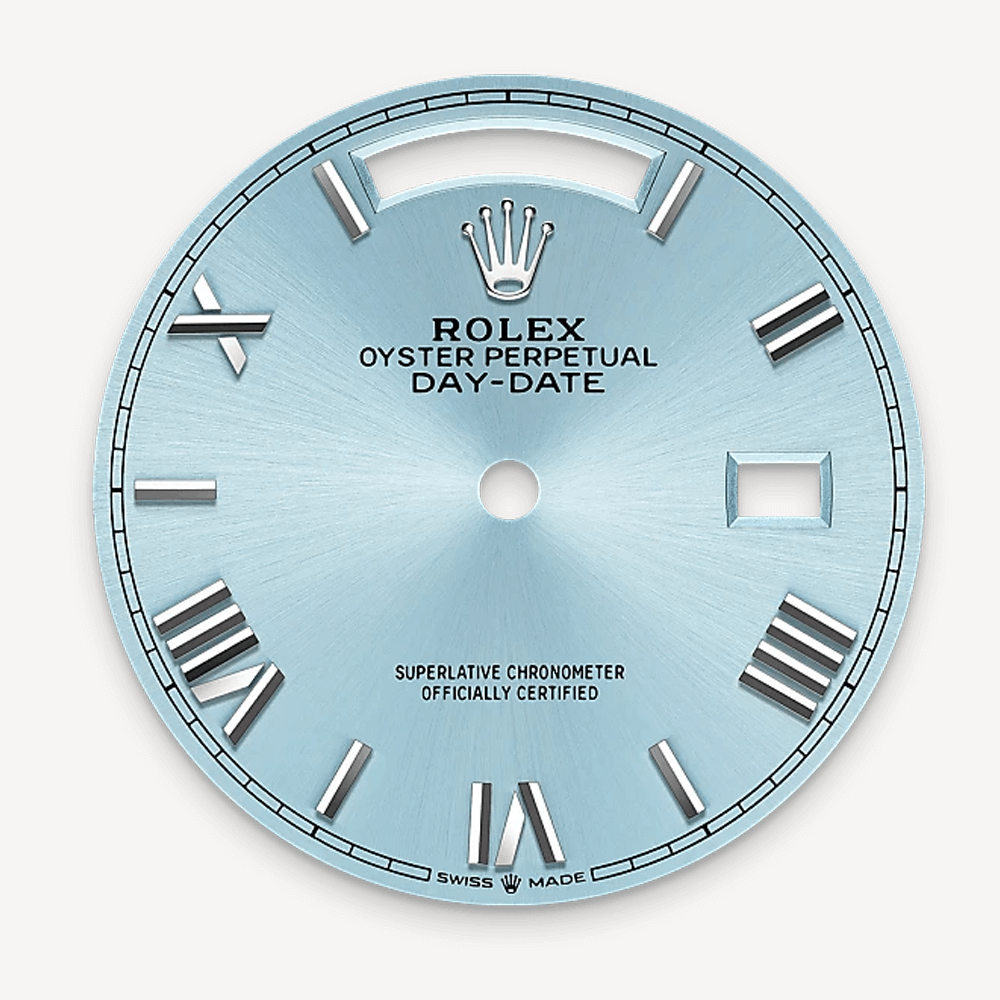 The ice-blue dial is the discreet and exclusive signature of a Rolex platinum watch. Rolex uses platinum, the noblest of metals, for the finest of watches.