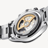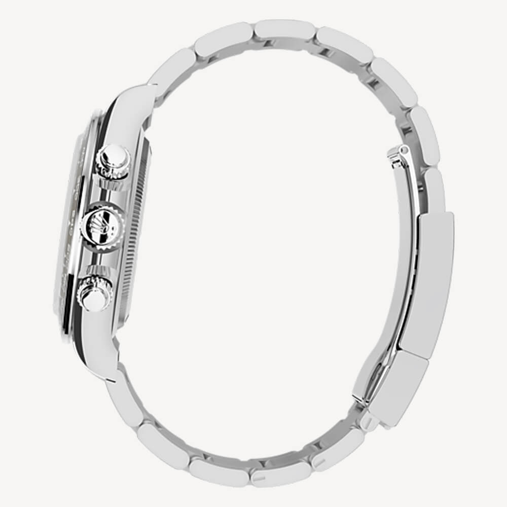 A key part of the model’s identity is the bezel moulded with a tachymetric scale for measuring average speeds of up to 400 miles or kilometres per hour. The monobloc Cerachrom bezel in high-tech ceramic offers a number of advantages: it is corrosion resistant, virtually scratchproof and the colour is unaffected by UV rays. This extremely durable bezel also offers an exceptionally legible tachymetric scale, thanks to the deposition of a thin layer of platinum in the numerals and graduations via a PVD (Physical Vapour Deposition) process. The monobloc Cerachrom bezel is made in a single piece and holds the crystal firmly in place on the middle case, ensuring waterproofness.