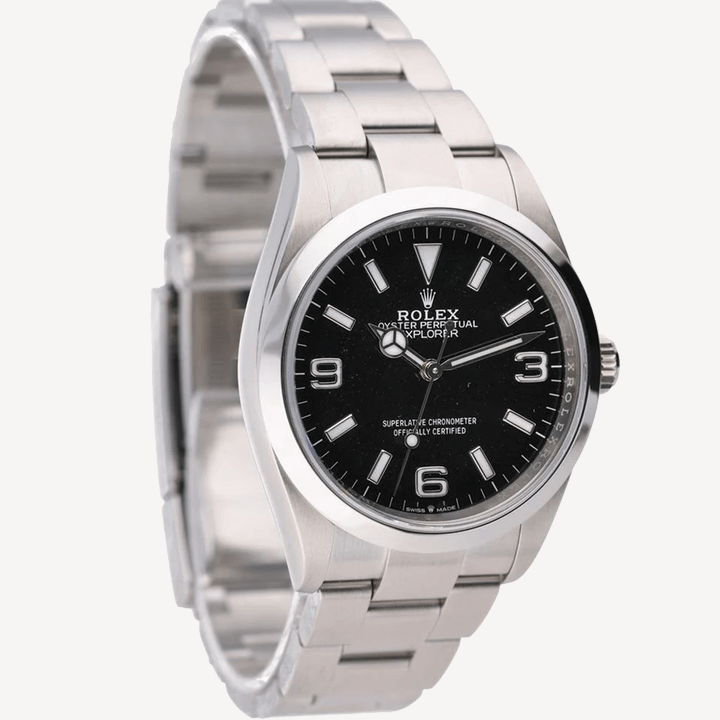 This Rolex Explorer watch, model number 124270, is a Gents wear produced in 2024. Its features include an automatic movement and is carefully crafted from Oystersteel, which extends from the 36mm case to the Oyster bracelet. On its dial, you will see black Arabic type indices protected by a Sapphire Crystal glass.