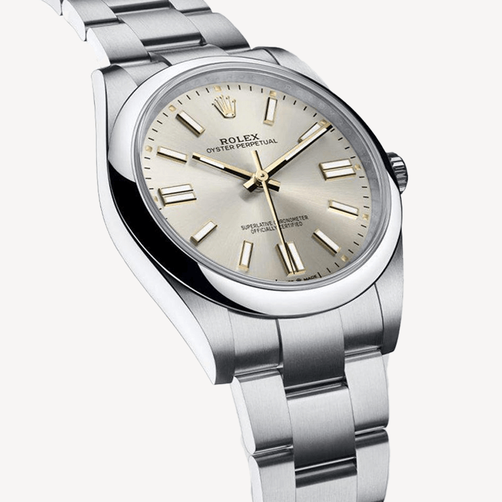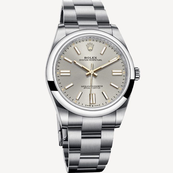 The Oyster Perpetual 41 with a silver dial and an Oyster bracelet.