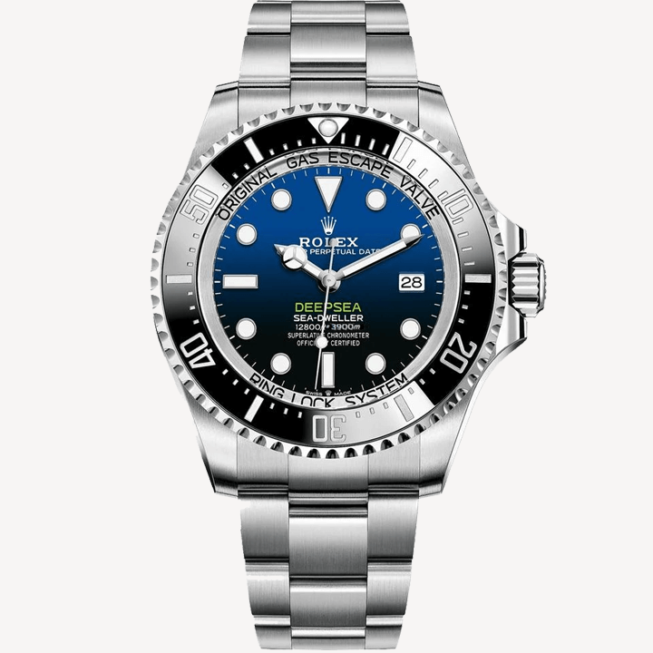 The D-Blue dial is meant for honouring James Cameron's historic solo dive. From blue to bottomless black, its two colour gradient dial. It powered by Rolex 3235 caliber.